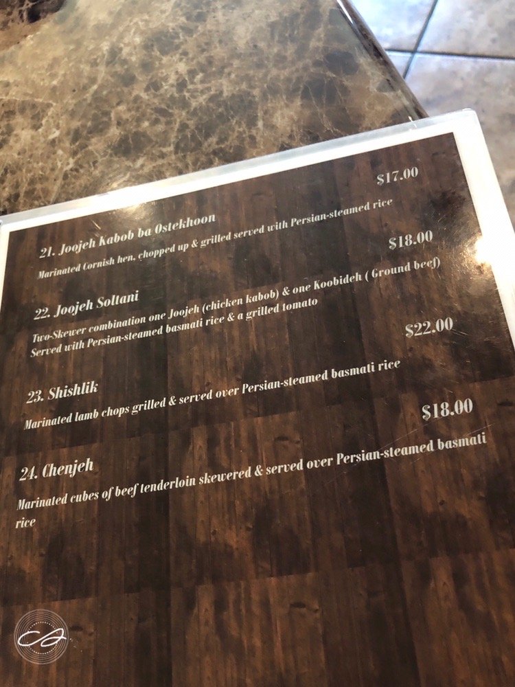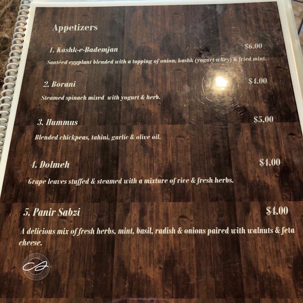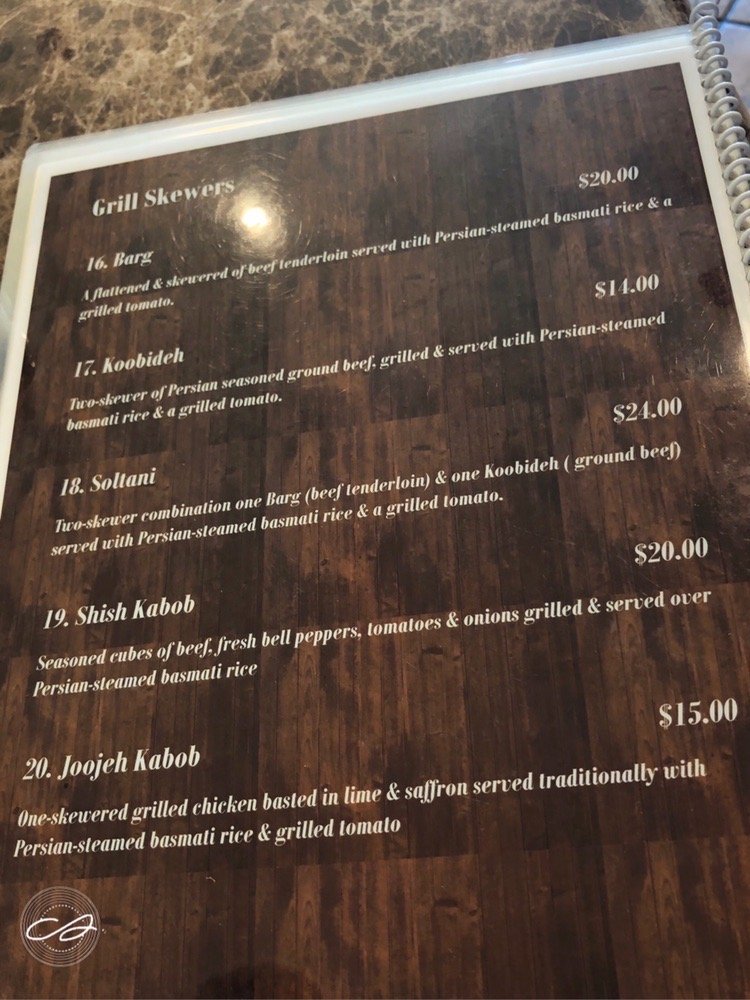 The menu is a delightful journey through Persian cuisine, featuring mouthwatering dishes like the Lamb Shank, marinated in lime saffron and served with traditional basmati rice, and the Ghormeh Sabzi, a hearty blend of fresh herbs and beef chunks that warms the soul. Don’t miss the Koobideh and Barg, both customer favorites, served with sides like hummus and grilled vegetables.